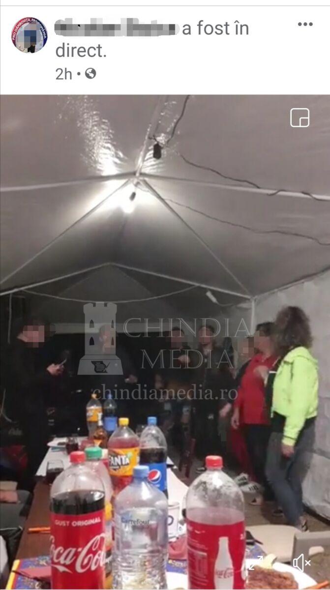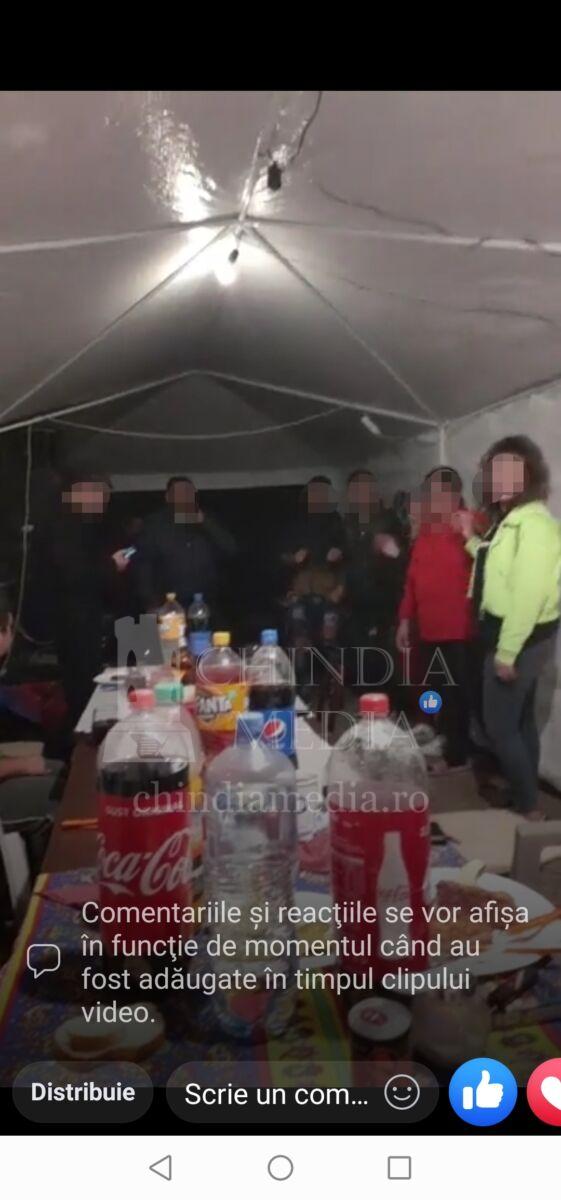 Imaginile au fost blurate de noi, dar se vede pe transmisiunea live cum un grup de persoane participă la un chef cu lăutari, muzica având sonorul puternic, lucru care a deranjat vecinii, aceștia chemând poliția.
