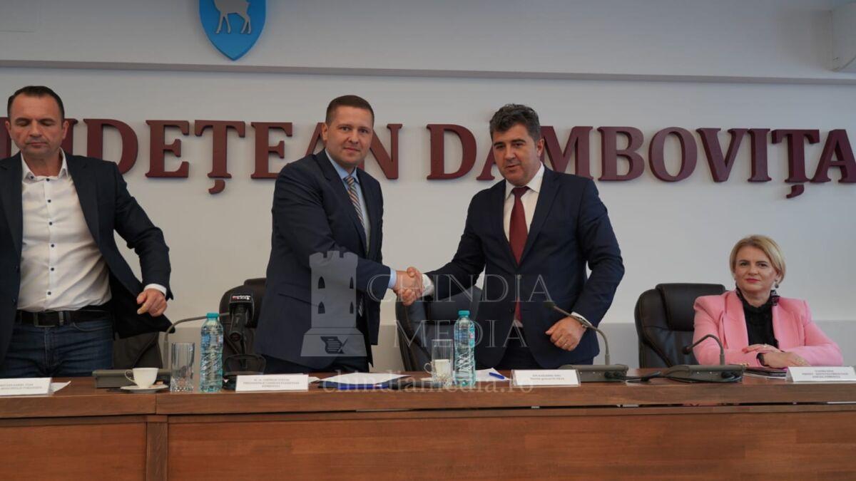 Astăzi, 18 mai 2022, la sediul Consiliului Județean Dâmbovița (CJD), a fost semnat protocolul de colaborare între Consiliul Județean Dâmbovița și Compania Națională CFR SA, protocol ce urmărește implementarea unor proiecte importante de dezvoltare a sectorului feroviar din județul nostru.