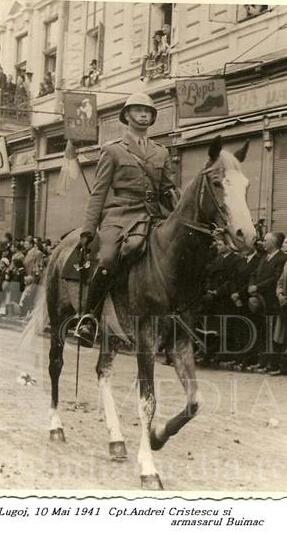 Peste câteva minute, locotenentul Andrei Cristescu, ieșind din grajd, mai destins, spune scurt: „vă mulțumesc”, continuînd desfășurarea programului. Peste câțiva ani, în timpul Războiului din Est, comandantul nostru s-a despărțit de frumosul armăsar Buimac ce își rupsese piciorul