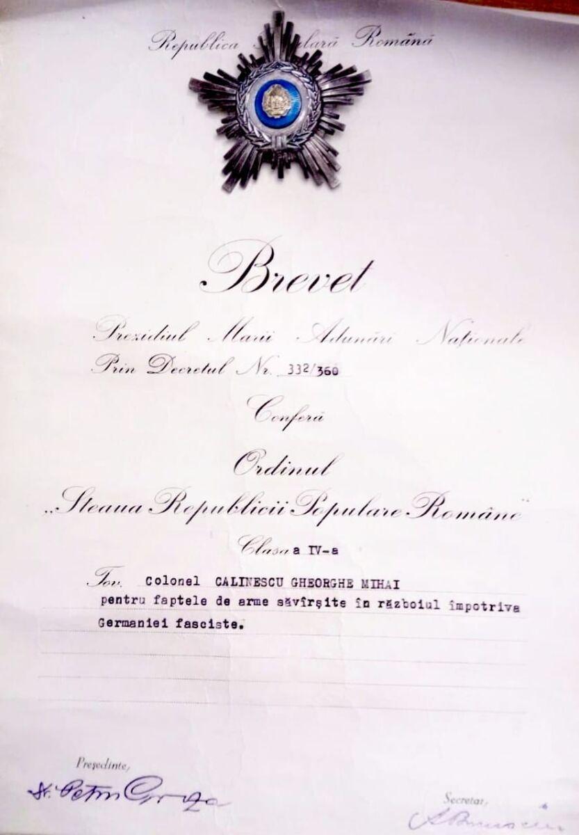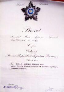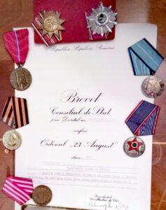 – Ordinul Steaua României în grad de cavaler, cu spade și panglică de Virtute Militară;