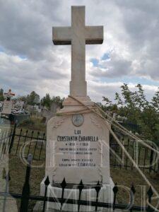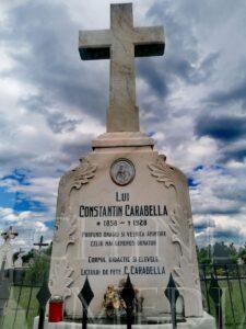 Personalitate proeminentă a orașului, Constantin Carabella este înmormântat în Cimitirul Central din Târgoviște, unde, astăzi, întâmplător sau nu, ca urmare a celor prezentate și descrise de mine în ultimii cinci ani, crucea și mormântul marelui filantrop, au căpătat o formă firească, fiind readusă la lumină, în primul rând, imaginea crucii, și mai ales înscrisul acesteia, care ne arată numele celui care la începutul secolului al XX-lea a îndeplinit funcția de primar al orașului Târgoviște.