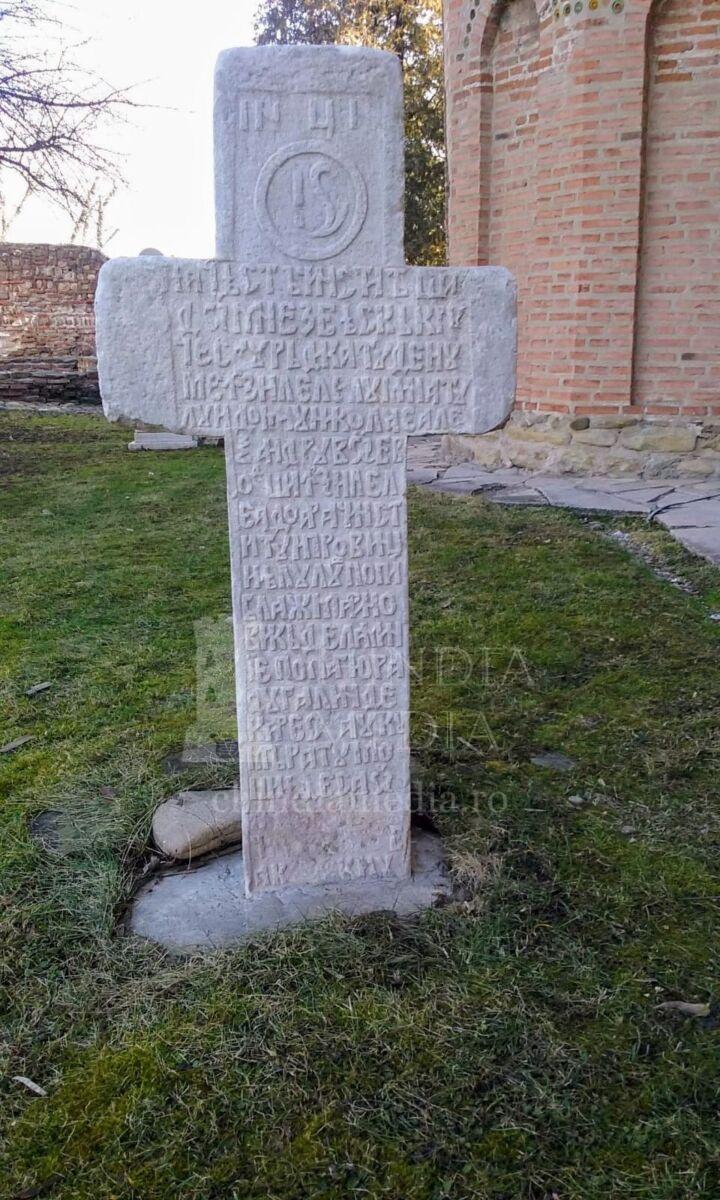 Pentru aceasta – continuă Paharnicul Brătescu – am început cu dela noi toată lucrarea, dărâmând mai întâiu prostul înveliș și nerămânând decât patru ziduri și acelea scurte din cauza pământului ce crescuse în jurul lor. Le-am înălțat jur împrejur de patru palme, i s-au făcut amvon cu clopotniță, din temelie, s-au învelit, s-au tencuit pe afară și pe din-năutru, s-au deosebit curtea și s-au închis cu zid de jur împrejur, făcându-i-se și poarta.