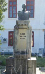 Deasupra plăcii de bronz se află o altă placă de marmură, având inscripția: ,,EROILOR NOȘTRI MORȚI PENTRU PATRIE ÎN RĂZBOAIELE DE LA 1877 – 1913 ȘI 1916 – 1918”. Sub plăcile de marmură se află o placă de bronz în formă de cruce, reprezentând laurii. Postamentul lateral, spre școala veche are două plăci, una de marmură, având inscripția: „Voi umbre mari/ Pe care vă slăvim/ Voi ce-ați păstrat/ Pământul cu nevoi/ În ziua-aceasta/ Sfântă ne-amintim/ Și suntem toți/ Alăturea de voi”, și o altă placă din bronz reprezentând scene de luptă.