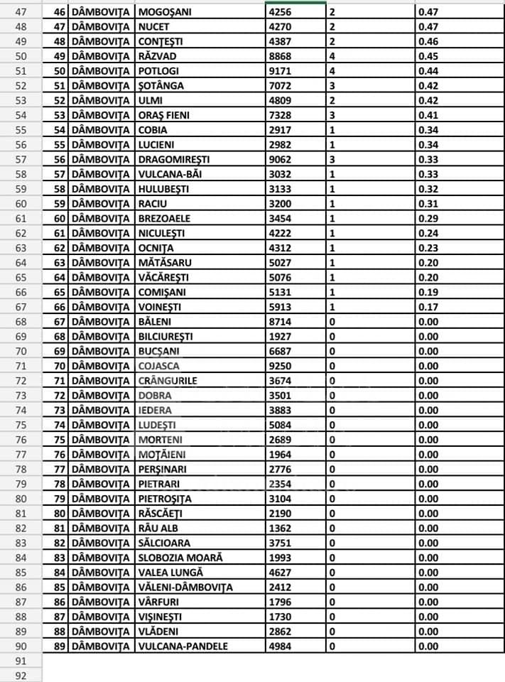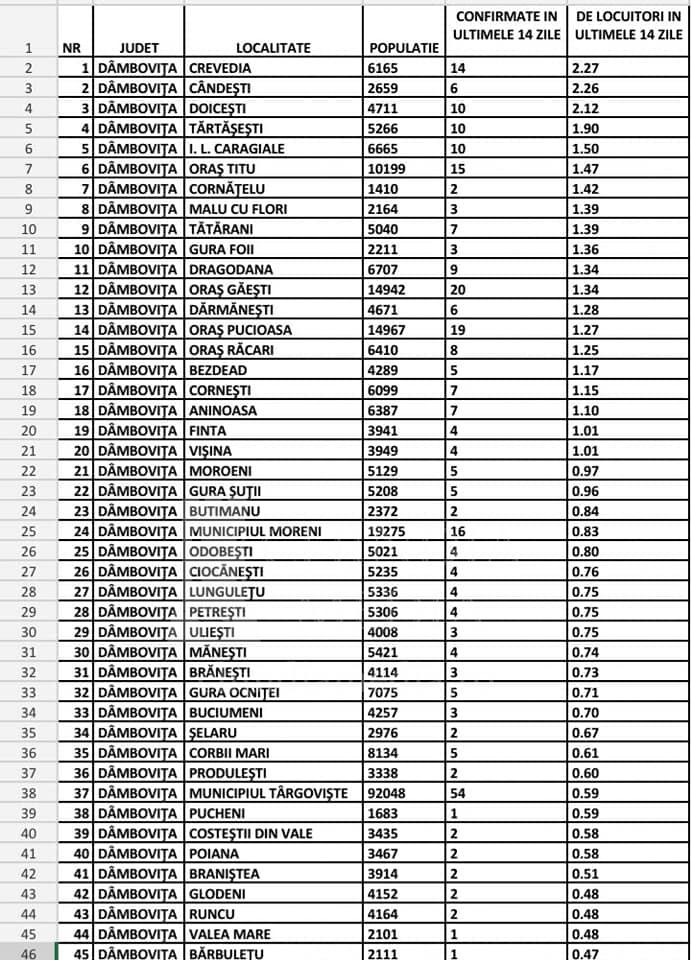 SITUAȚIA COVID-19 DIN DÂMBOVIȚA PE LOCALITATI