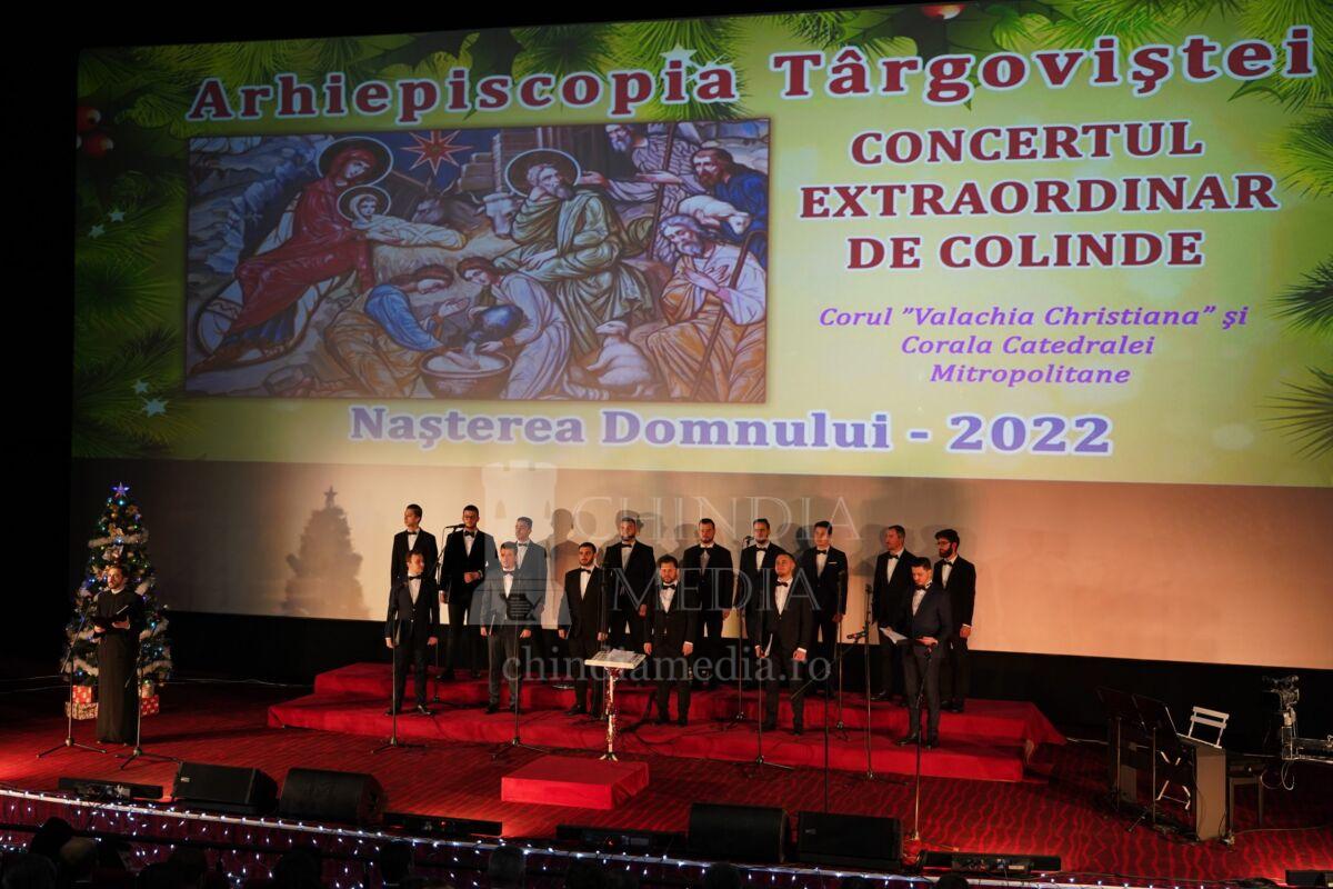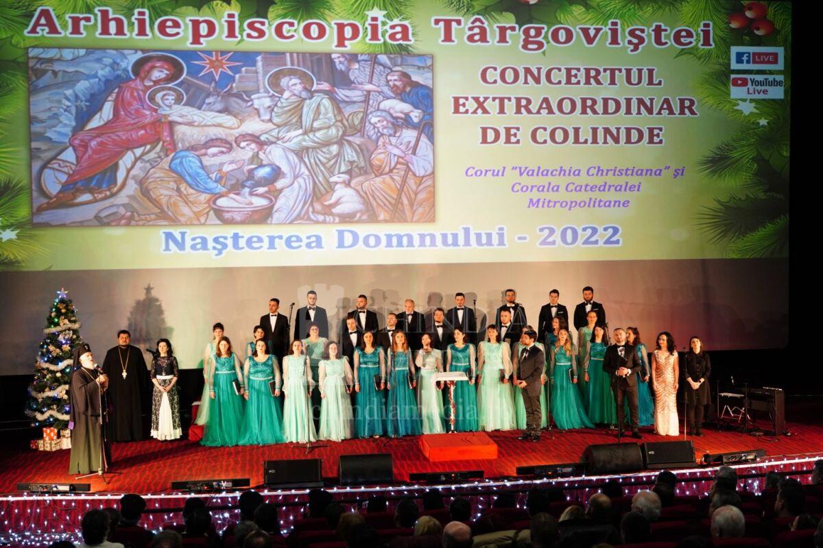 Concertul a fost susținut de Corul „Valachia Christiana” al Arhiepiscopiei Târgoviştei și de Corala Catedralei din Târgoviște, ambele dirijate de către domnul Lect. univ. dr. Mihail Vlădăreanu, care, cu deosebită măiestrie, au interpretat colinde din repertoriul românesc și mondial. Remarcabilă a fost participarea mezzosopranei Ștefania Boloș din cadrul Filarmonicii „George Enescu” din București și a baritonului Yuriy Țsiple, artiști cunoscuți în spațiul cultural românesc și european, dar și promotori ai valorilor noastre creștine.