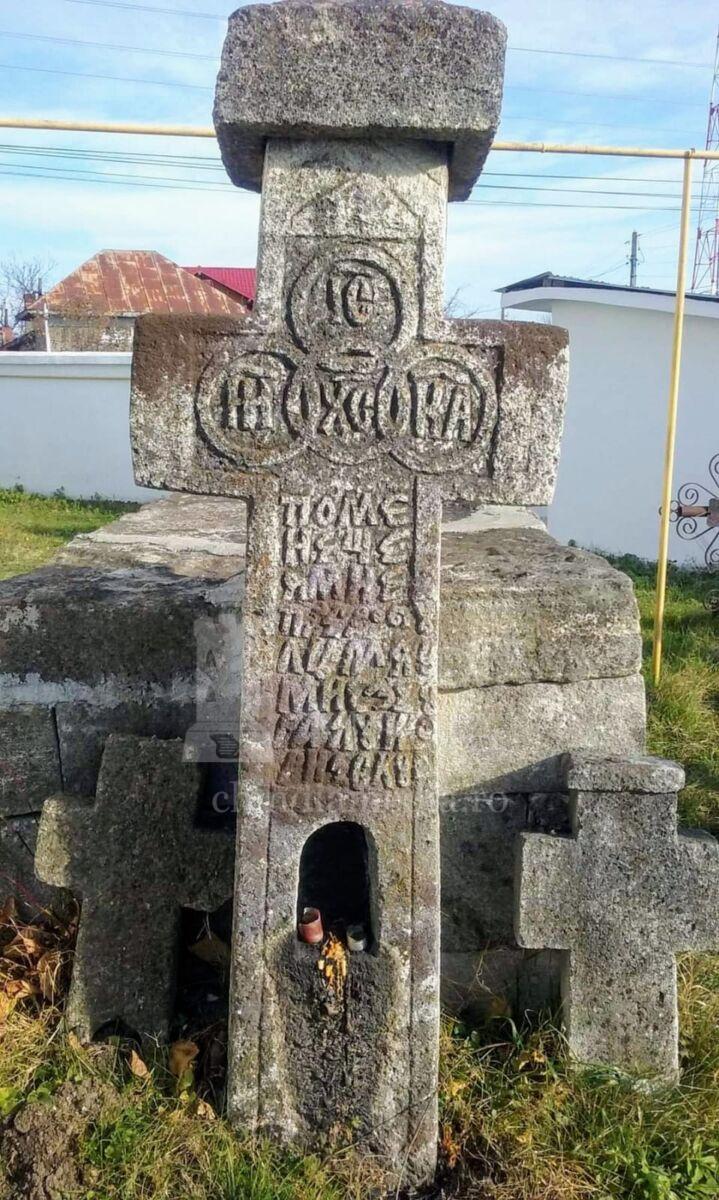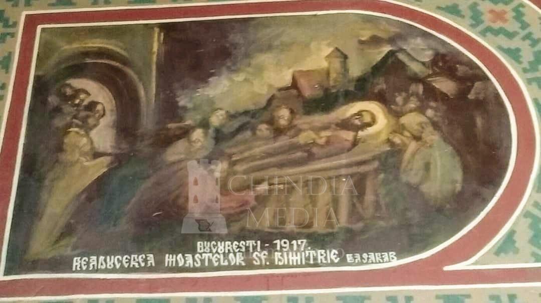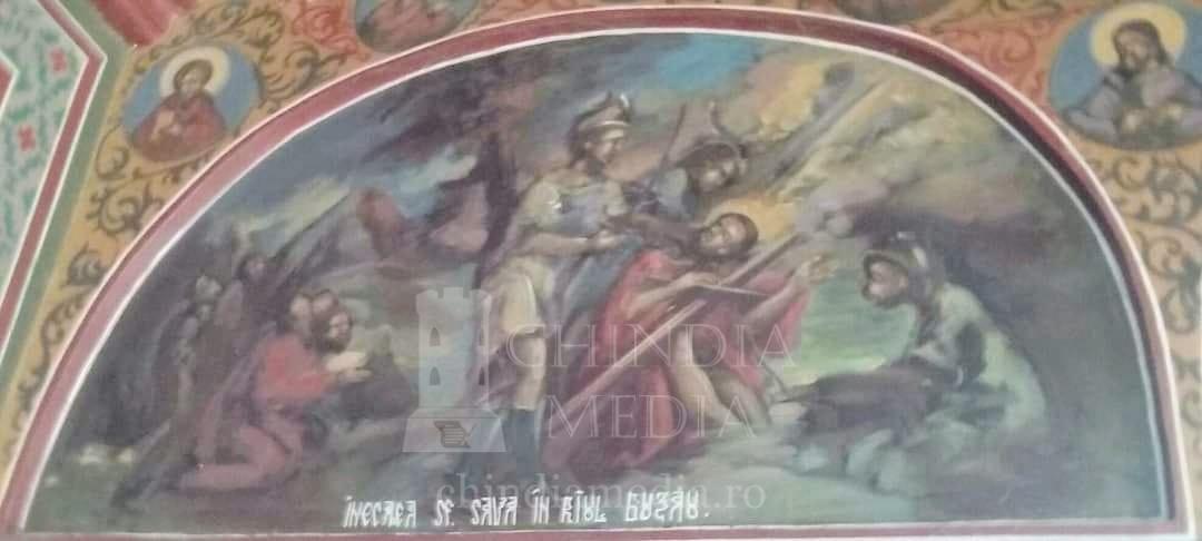 Prima pisanie a bisericii datând din anul 1700, situată deasupra uşii de intrare în pronaos, face practic un istoric al acesteia: ,,Această sf(â)ntă biserică fost-au zidită den temeiiia ei de Staico log(ofat) den Bucov/ cu jup(â)neasa lui Caplea la leat 6970, iar dupre dânşii stăpânit-au satul/ acesta Papa log(ofat) cel bătrân şi în urmă fii-său Drăghici vist(ierul), apoi dupre el, feciorii lui, Papa vistierul cu fraţi(i) lui. Iar acum rămânând numai pre seama/ lui Şărban vel vistiiar, ginerile Papei vist(ier), avându de soţ(ie) pre Ilinca, fata Papei şi/ fiind această bisearică veache de ani 239, fiindu stricată şi slabă o au întărit acest Şărban/ vel vistiier, înoindu-i întâi bolta – fiindu slabă să cază; şi au mai adaus den/ temelie tinda şi pridvorul şi clopotniţa care n-au fost şi o au înfru/museţat şi pe den lăuntru precum se veade./ Întru slava lui Dumnezeu şi întru/ pomenirea lui şi a jupâneasii lui Ilincăi şi a coconilor lor. Amin. Septemvrie 1 d(ni), văleat 7209”.