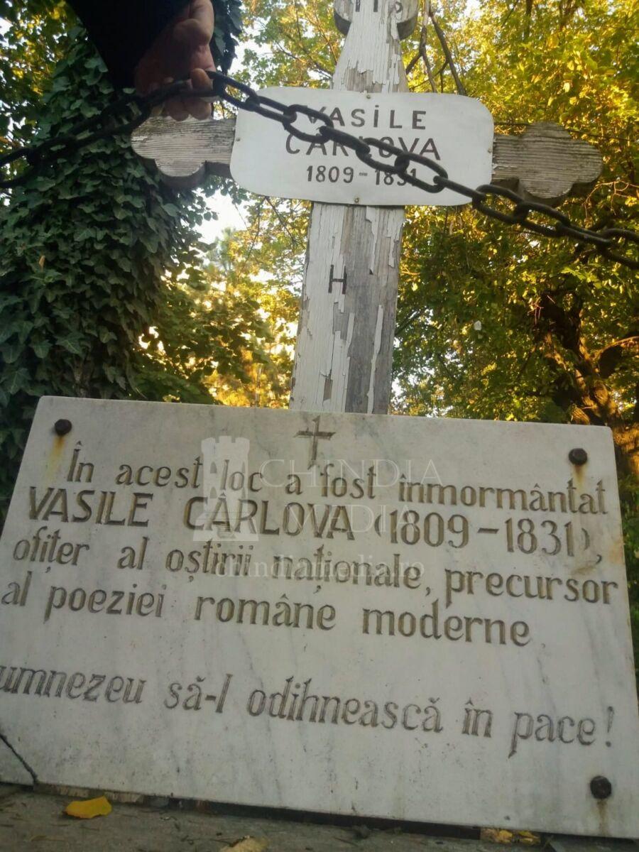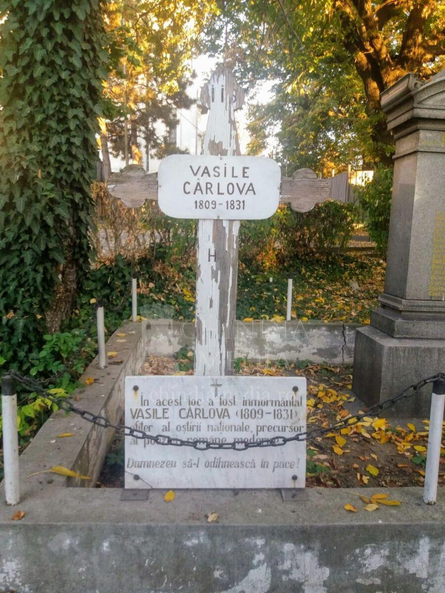 Vasile Cârlova s-a stins din viață prematur, la doar 22 de ani, în data de 18 septembrie 1831, ca urmare a unei boli infecțioase căpătată în lagărul de la Craiova, trupul lui fiind îngropat în curtea bisericii Madona Dudu din oraș, după care osemintele i-au fost mutate în alt cimitir, pierzându-se urma locului de veci al poetului. Cert este, că astăzi încă există în curtea bisericii Madona Dudu din Craiova, o placă de marmură și o cruce de lemn „spoită” și arsă de razele soarelui, care marchează faptul că acolo a fost îngropat inițial poetul „târgoviștean” Vasile Cârlova.