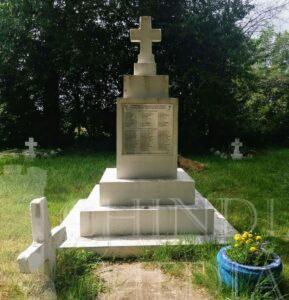 „La 22 și 23 Noiembrie 1916 au căzut aici pentru întregirea neamului 428 de eroi din Regimentele : Reg 24 Art., Reg 64 Inf., Reg 29 Art., Reg 67 Inf., Reg 22 Art., Reg 16 Inf., Reg 56 Inf., Reg 25 Art., Reg 8 Inf., Reg 7 Inf., iar germani 61. Dumnezeu să-i odihnească în pace! Finta 26 Octombrie 1933”.