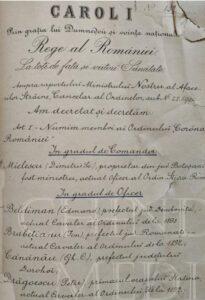 Ordinul „Coroana României”, instituit prin legea din 10 mai 1881, avea scopul de a recompensa serviciile aduse statului. Potrivit Regulamentului Ordinului „Coroana României” nr. 2.002 din 6 august 1885 (aflat, sub formă de copie, la Arhivele Naționale Istorice Centrale, Ministerul Afacerilor Externe. Cancelaria Ordinelor, dosar nr. 642): «decorațiunea acestui Ordin este o cruce cu ramuri egale; fiecare ramură e de smalț roșu având împrejur o dungă albă; între ramuri, cifra regală.