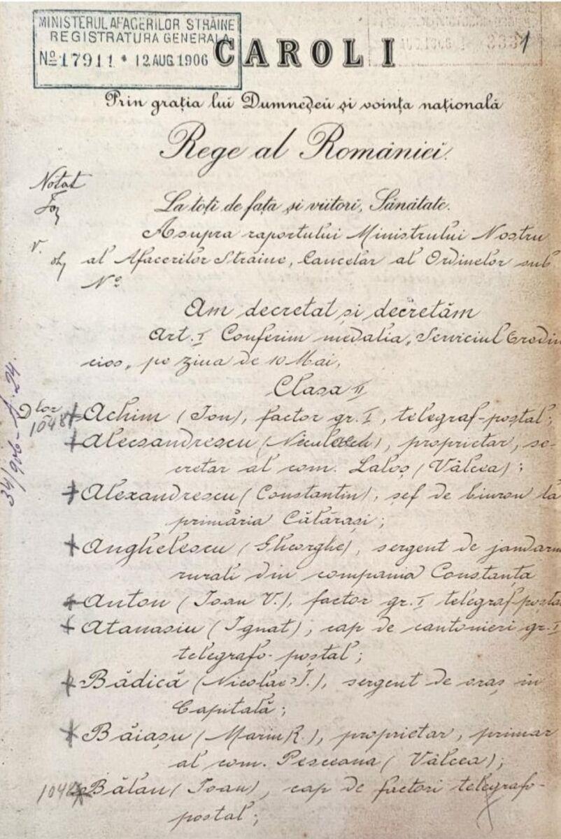 Urmare a raportului generalului de divizie Iacob Lahovari, ministrului Afacerilor Străine, cancelar al Ordinelor, nr. 17.910 din 12 august 1906, regele Carol I a semnat în Castelul Peleș, la 12 august 1906, decretul nr. 3.067, prin care a conferit lui Nicolae I. Popescu, primar al com. Cornești (Dâmbovița), precum și altora, Medalia „Serviciul Credincios” clasa a II-a.
