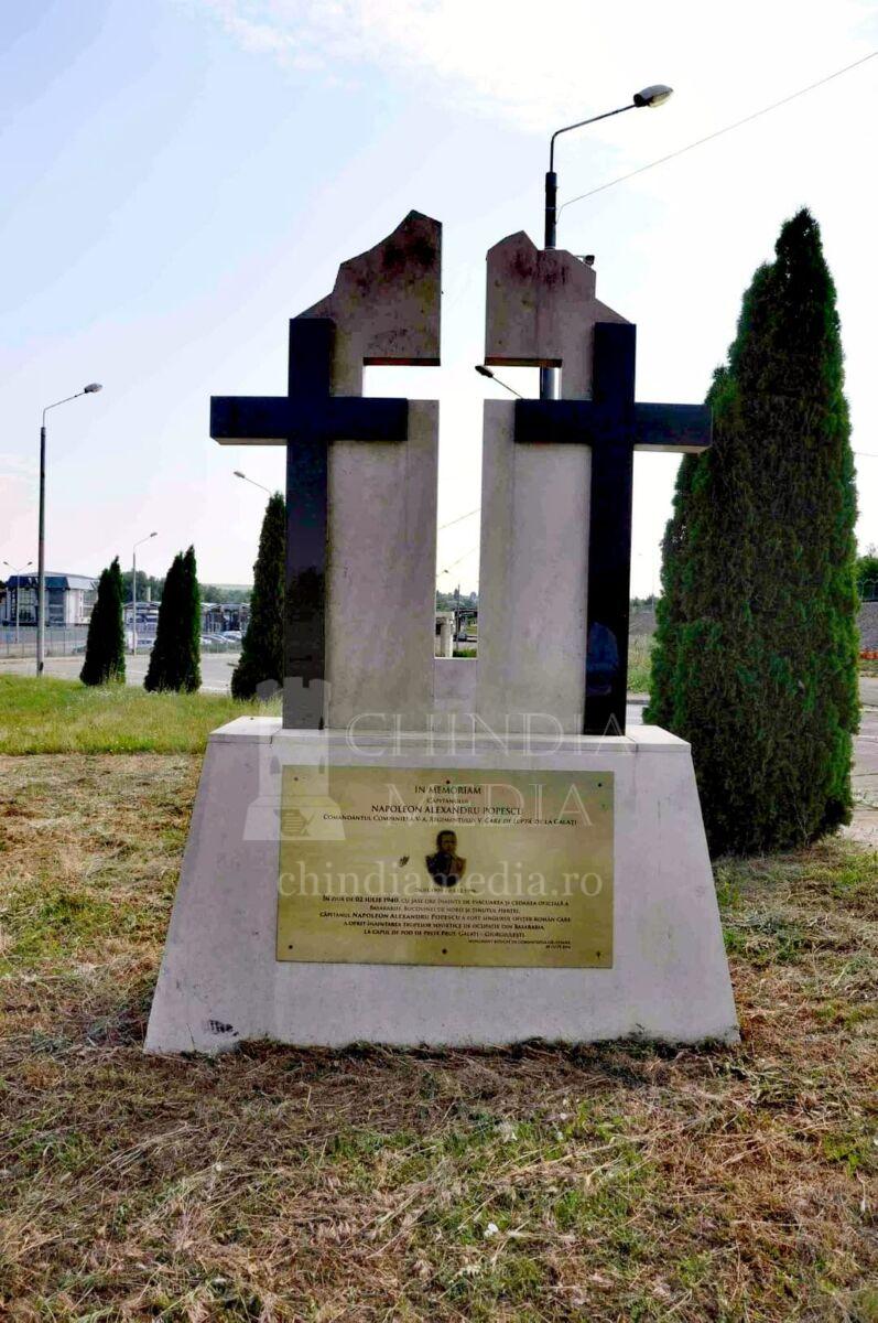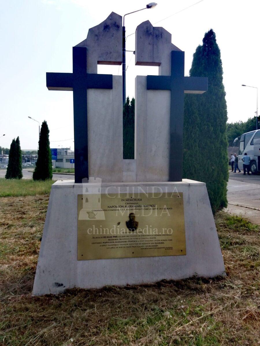 Pe placa comemorativă stă scris astăzi pentru eternitate: „In memoriam căpitanului Napoleon Alexandru Popescu comandantul Companiei a V-a Regimentul V Care de Luptă de la Galați 26.01.1909 – 03.12.1996. În ziua de 2 iulie 1940, cu șase ore înainte de evacuarea și cedarea oficială a Basarabiei, Bucovinei de Nord și ținutului Herței, căpitanul Napoleon Alexandru Popescu a fost singurul ofițer român care a oprit înaintarea trupelor sovietice de ocupație din Basarabia, la capul de pod de peste Prut, Galați-Giurgiulești”.