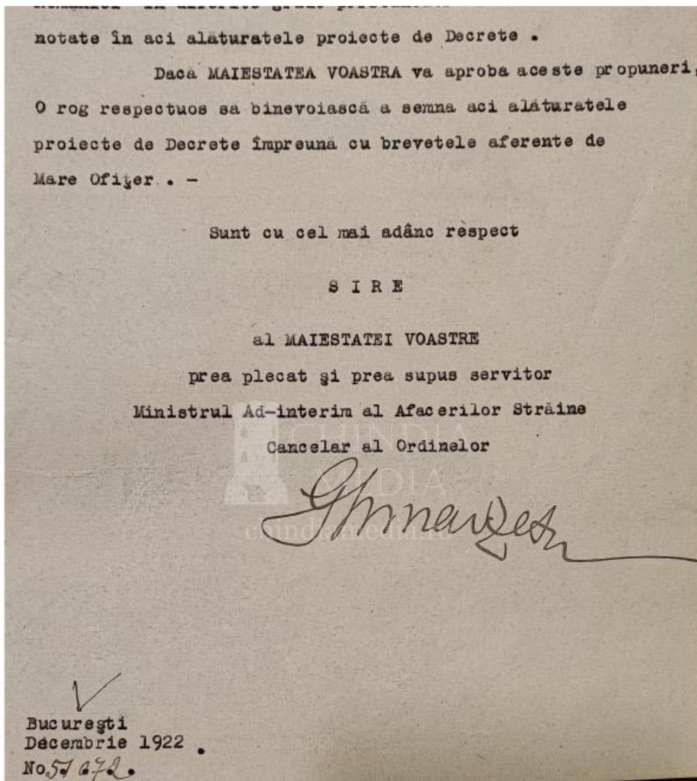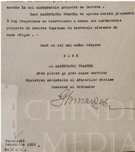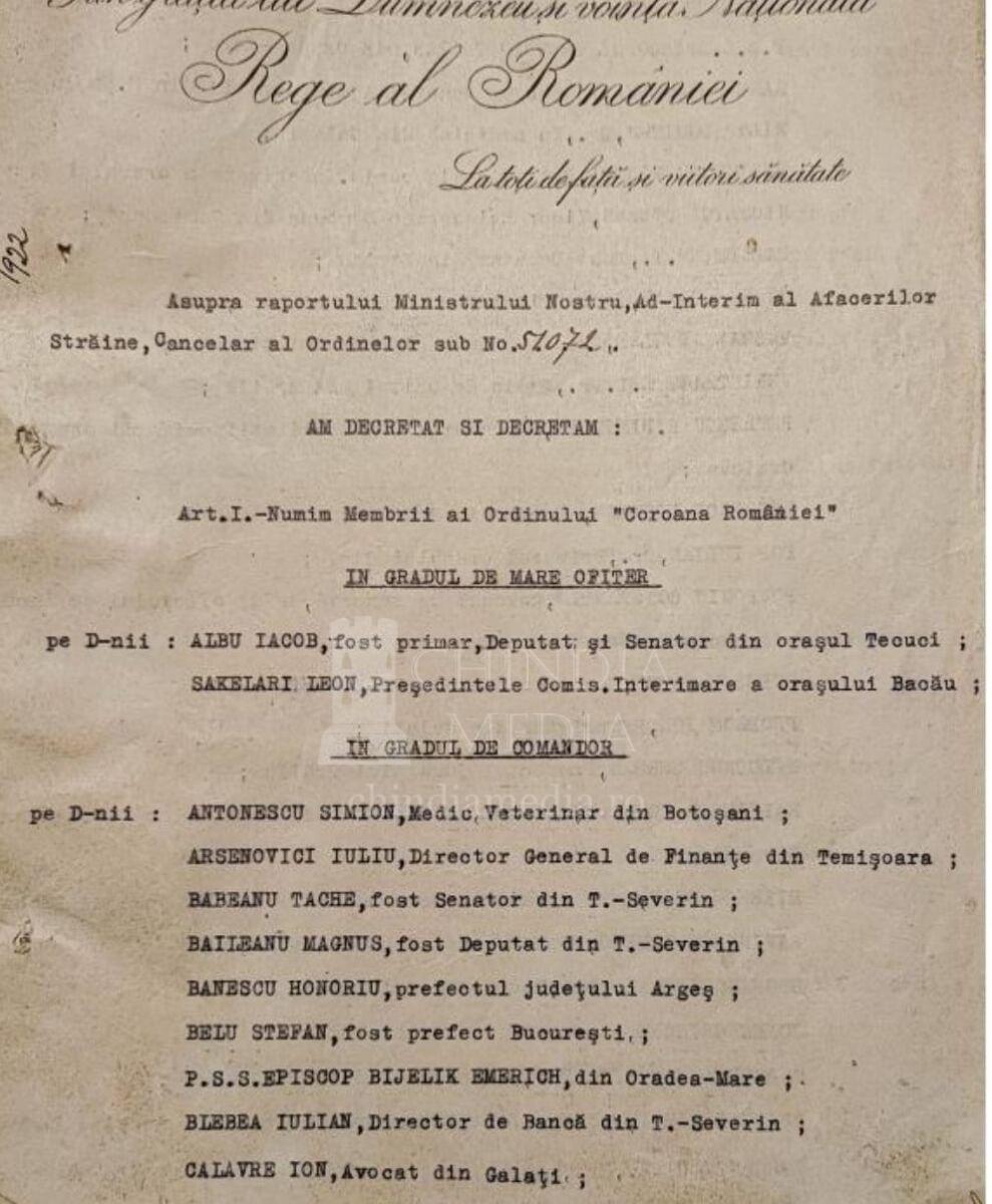 În urma intervenirii Ministerului de Interne, cu ocazia Încoronării Suveranilor României și urmare a raportului ministrului ad-interim al Afacerilor Străine, cancelar al Ordinelor, nr. 51.072, regele Ferdinand I a semnat la București, în 30 decembrie 1922, decretul nr. 5.799 (aflat la Arhivele Naționale Istorice Centrale, Ministerul Afacerilor Externe. Cancelaria Ordinelor, dosar nr. 248/1922), prin care acorda lui Dogaru Constantin, polițaiul orașului Târgoviște, precum și altora, Ordinul „Coroana României” în gradul de Ofițer.