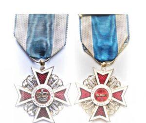 Prezentăm, apelând la faleristică, la heraldică și la sigilografie, descrierea decorației și reproducerile grafice care provin de la Arhivele Naționale Istorice Centrale din București și de la Muzeul Jandarmeriei Române. Ordinul „Coroana României”, instituit în 10 mai 1881, avea scopul de a recompensa serviciile aduse statului. Conform Regulamentului Ordinului „Coroana României” (Decretul nr. 2.002 din 6 august 1885, aflat, în copie, la Arhivele Naționale Istorice Centrale, Ministerul Afacerilor Externe. Cancelaria Ordinelor, dosar nr. 642), Ordinul „Coroana României” se prezintă sub forma unei cruci de Malta, cu diametrul de 40 mm pentru Cavaleri, smălțuită roșu, cu marginea de smalț alb.