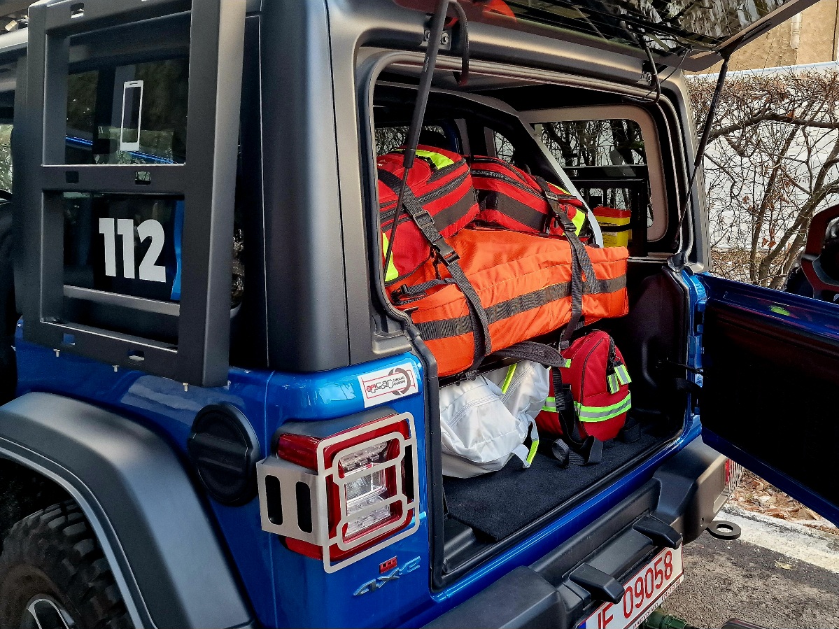 Dintre cele 17 autospeciale destinate pentru acces în zone greu accesibile, un Jeep Wrangler a ajuns la Inspectoratul de Jandarmi Județean Dâmbovița și va fi folosit de jandarmii montani de la Postul Peștera, pentru intervențiile în zona de competență din Munții Bucegi.