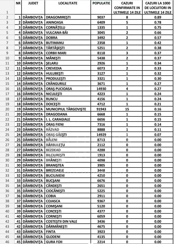 SITUAȚIA COVID-19 DIN DÂMBOVIȚA